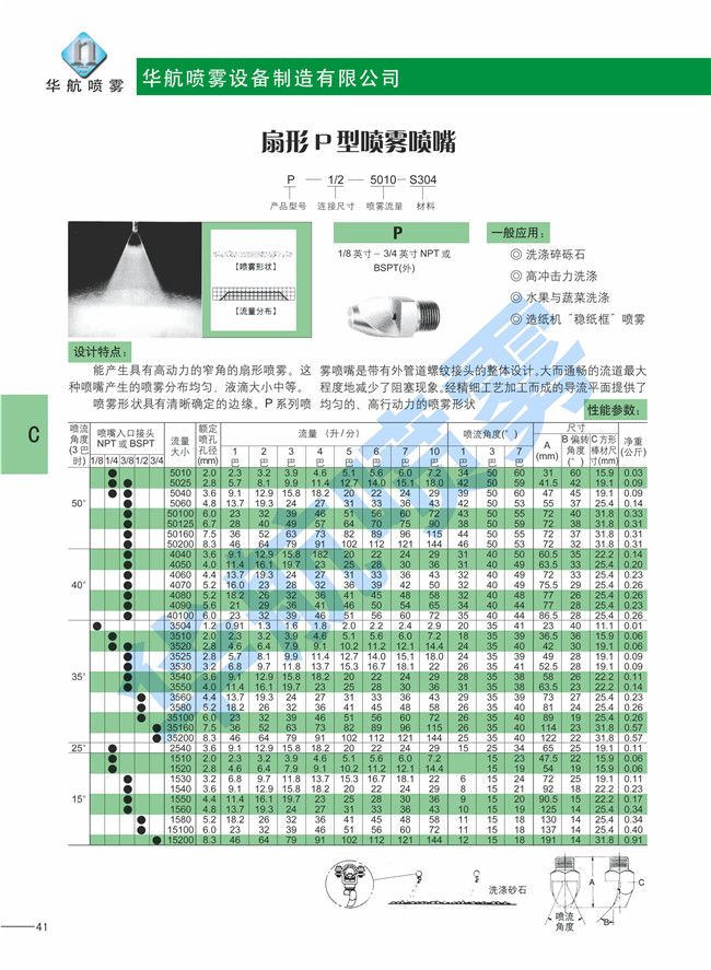 扇形P型反沖洗噴霧噴嘴